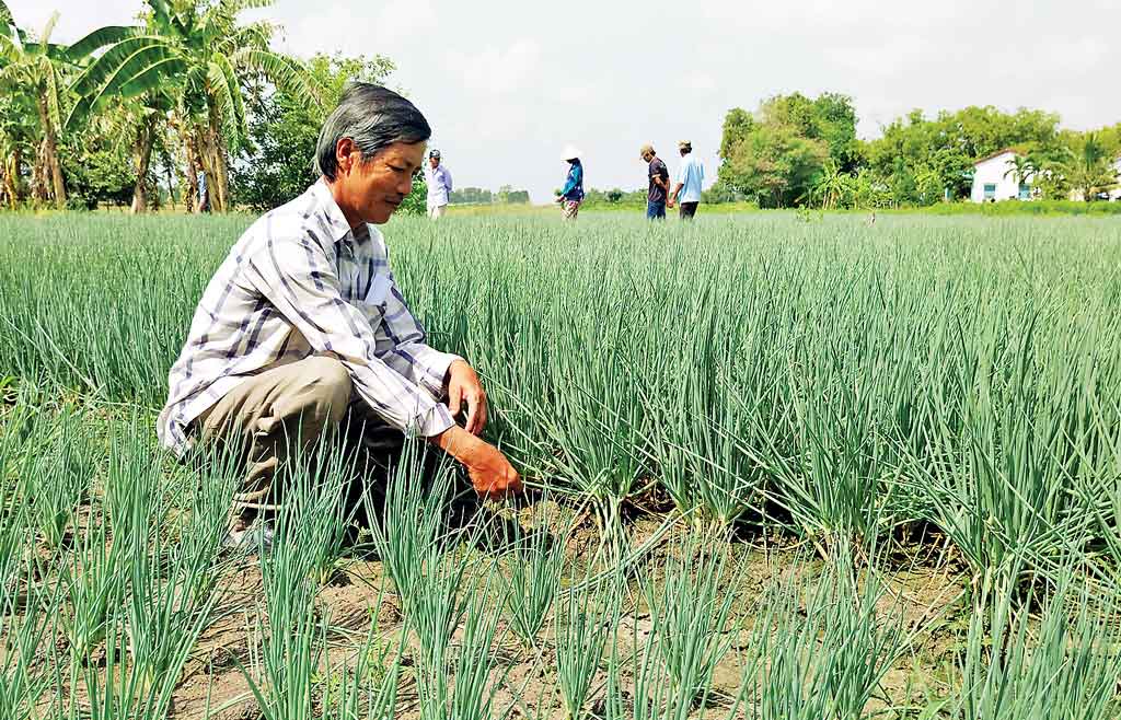Nông dân tham gia các lớp đào tạo nghề để sản xuất hiệu quả (Trong ảnh: Ông Phạm Văn Lao (xã Phước Vân, huyện Cần Đước) chăm sóc rau màu)