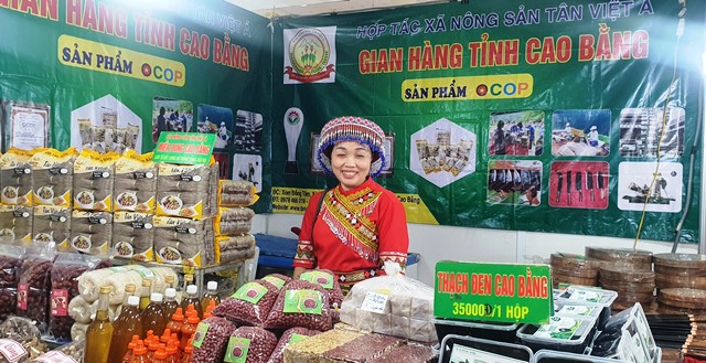 | Một gian hàng đặc sản địa phương tại phiên chợ. (Ảnh: HNV) |