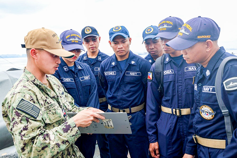 Lực lượng Hải quân Philippines lắng nghe sĩ quan Mỹ hướng dẫn trong một cuộc tập trận. Ảnh: DVIDS