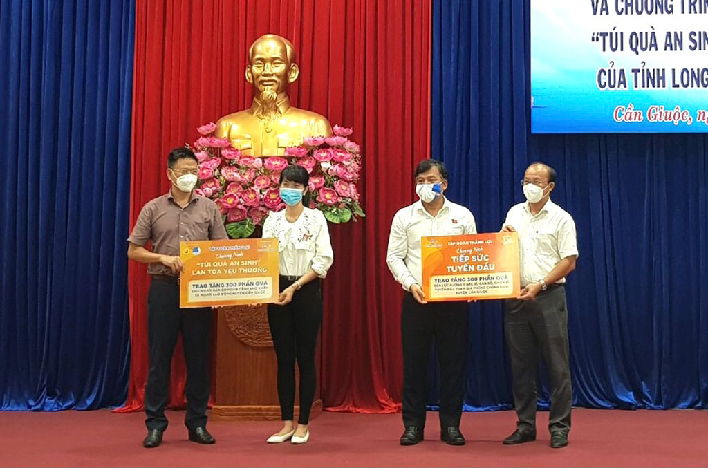Theo đó, Hiệp hội Doanh nghiệp tỉnh Long An phối hợp Sở Lao động - Thương binh và Xã hội, Tỉnh đoàn tặng 1.700 phần quà cho người cao tuổi, trẻ em tại các khu nhà trọ và 600 phần quà tặng cho lực lượng tuyến đầu chống dịch, gia đình có hoàn cảnh khó khăn trên địa bàn huyện Cần Giuộc.