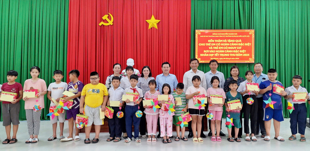 Tại đây, Phó Bí thư Thường trực Tỉnh ủy, Trưởng đoàn đại biểu Quốc hội tỉnh - Nguyễn Thanh Hải; Phó Chủ tịch UBND TP.Tân An - Nguyễn Minh Sang ân cần thăm hỏi, động viên các em luôn vui, khỏe, chăm ngoan và học giỏi. Đồng thời, chúc các em đón một mùa Trung thu đầm ấm, ý nghĩa./.