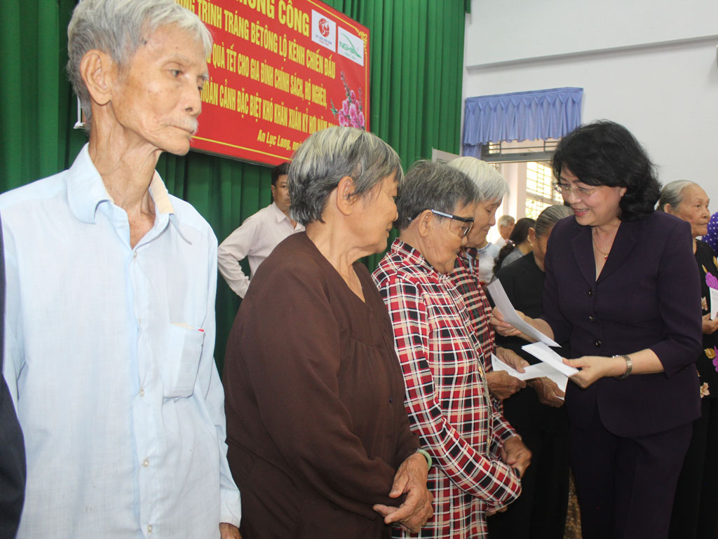 Phó Chủ tịch nước - Đặng Thị Ngọc Thịnh tặng quà tết tại Long An