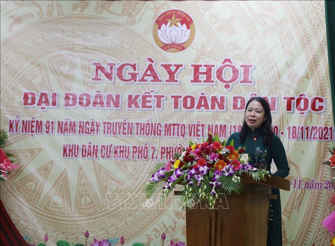 | Phó Chủ tịch nước Võ Thị Ánh Xuân phát biểu tại Ngày hội. Ảnh: TTXVN. |