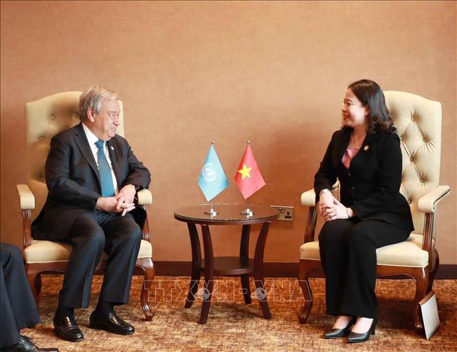 Phó Chủ tịch nước nhấn mạnh Việt Nam luôn quyết tâm đóng góp tích cực, trách nhiệm vào công việc chung của Liên hợp quốc, trong đó có việc thực hiện các Mục tiêu Phát triển Bền vững đến năm 2030 và phấn đấu đạt phát thải ròng bằng 0 vào năm 2050. Trong tiến trình này, Việt Nam mong muốn tiếp tục nhận được sự hợp tác, hỗ trợ hiệu quả của Liên hợp quốc, nhất là tiếp cận tài chính, công nghệ, đào tạo nguồn nhân lực. Phó Chủ tịch nước đề nghị Tổng Thư ký Liên hợp quốc quan tâm, tạo điều kiện thuận lợi để các nước đang phát triển phát huy vai trò, tiếng nói trong tham gia giải quyết các vấn đề toàn cầu.