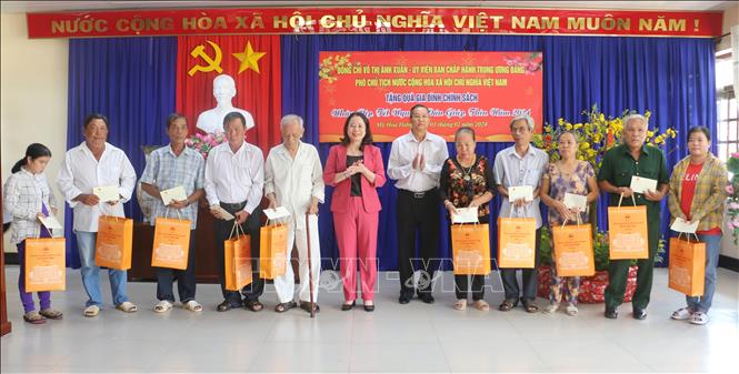 | Phó Chủ tịch nước Võ Thị Ánh Xuân trao quà Tết tặng các gia đình chính sách có hoàn cảnh khó khăn, hộ nghèo, cận nghèo, hộ khó khăn, hộ nghèo, cận nghèo tại xã Mỹ Hòa Hưng, thành phố Long Xuyên, tỉnh An Giang |