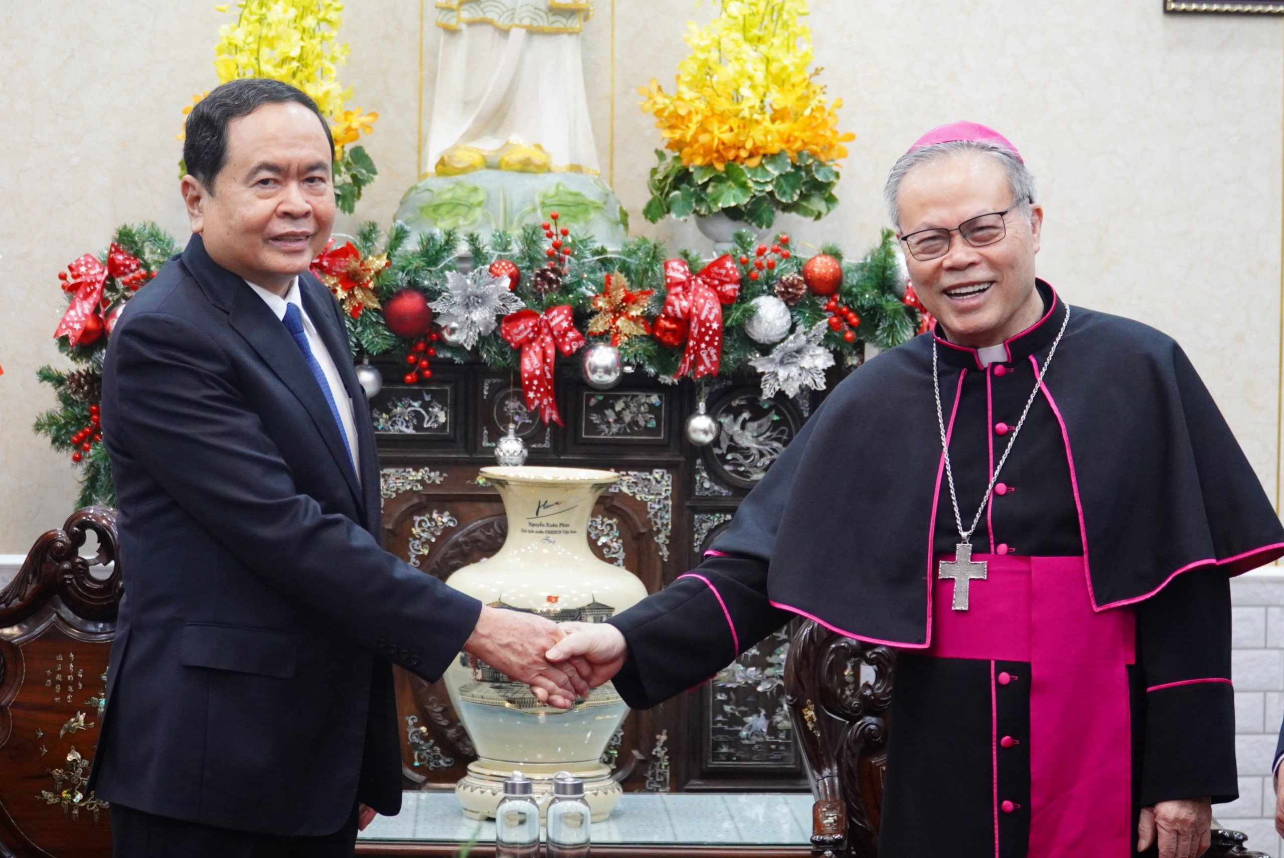 Ngày 23/12, tại thành phố Huế, Ủy viên Bộ Chính trị, Phó Chủ tịch Thường trực Quốc hội Trần Thanh Mẫn cùng đoàn công tác đã đến thăm và chúc mừng Lễ Giáng sinh và Năm mới 2023 tại Tòa Tổng Giáo phận Huế.