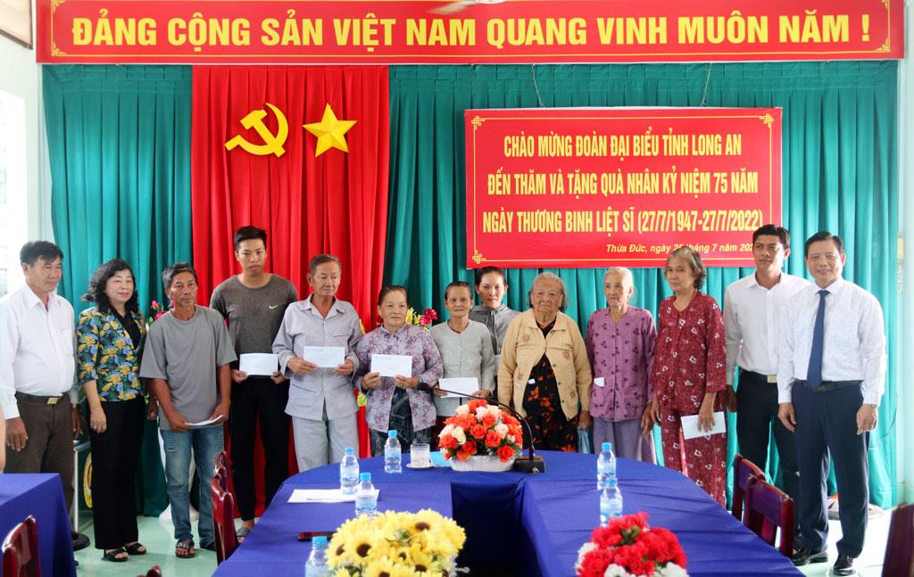 Dịp này, ngoài tặng quà cho những hộ gia đình có công nuôi giấu thương, bệnh binh tỉnh Long An, đoàn còn tặng 1 phần quà cho Đảng ủy, HĐND, UBND, UBMTTQ Việt Nam xã Thừa Đức và hỗ trợ kinh phí xây dựng 2 căn nhà cho gia đình chính sách trên địa bàn xã.