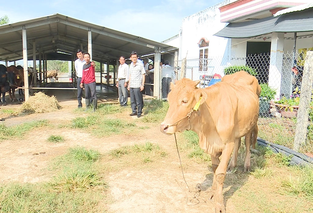 Đoàn tham quan thực tế tại hộ chăn nuôi bò thịt tại xã Hòa Khánh Đông