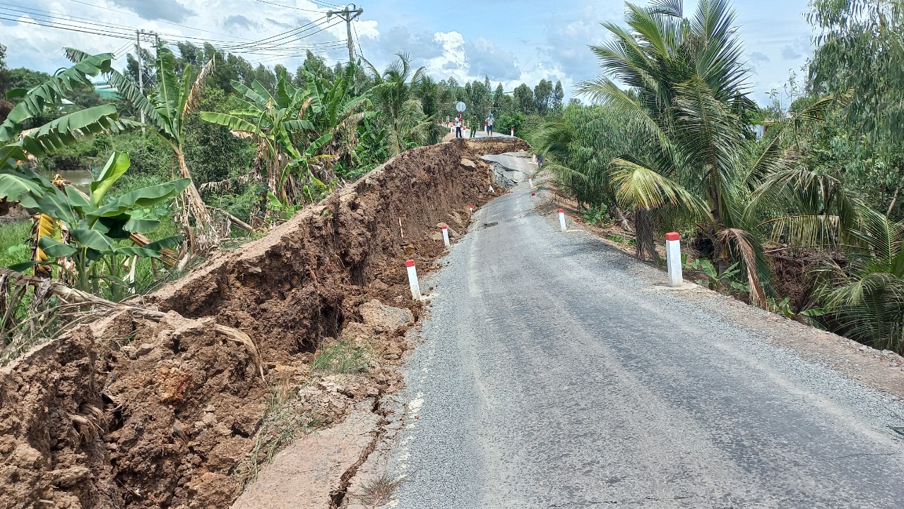 Tuyến đường bờ Bắc, cặp sông Vàm Cỏ Tây, xã Tuyên Bình Tây, huyện Vĩnh Hưng bị sạt lở