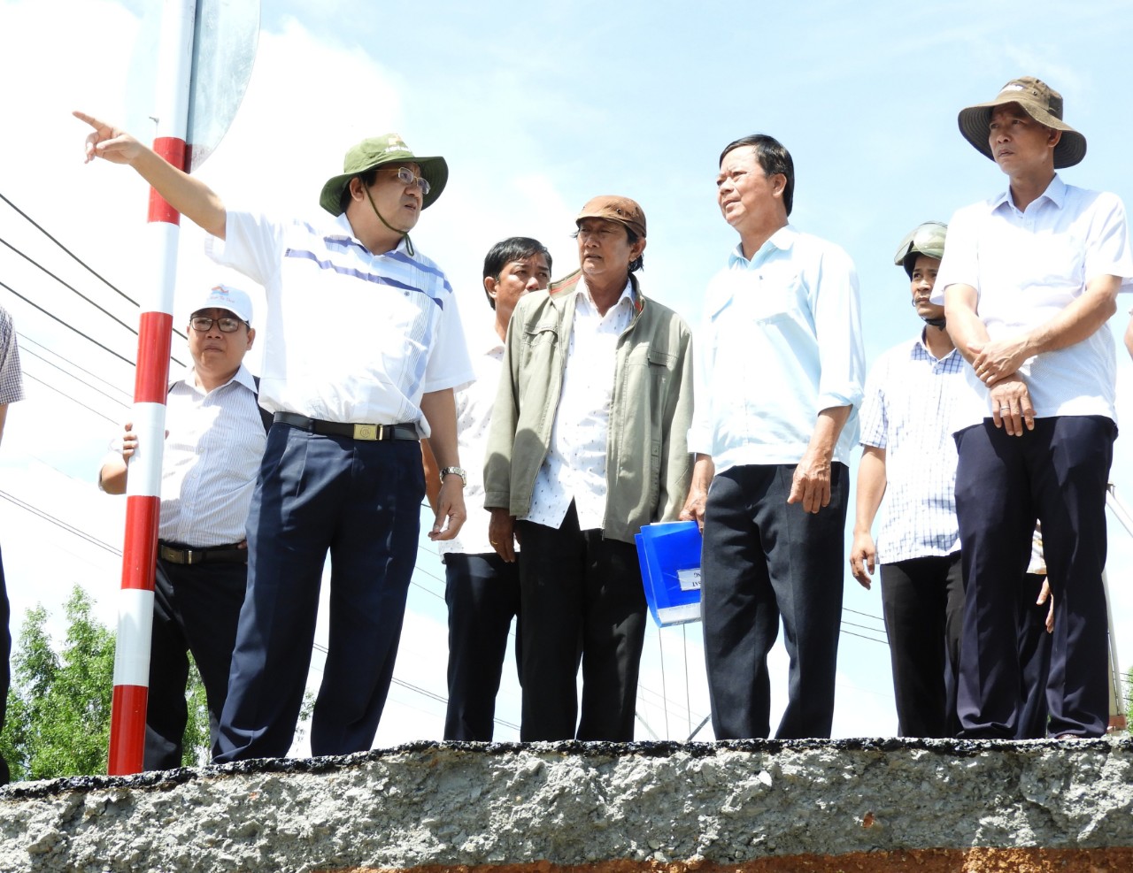 Phó Chủ tịch UBND tỉnh - Nguyễn Minh Lâm khảo sát tuyến đường sạt lở tại huyện Vĩnh Hưng