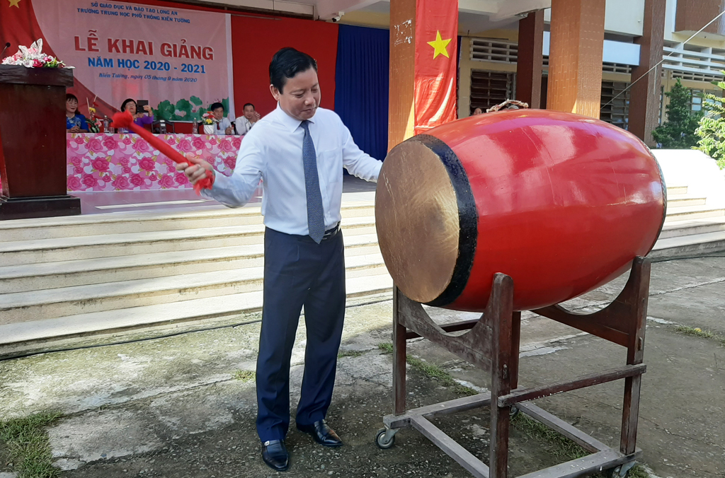 Phó Chủ tịch UBND tỉnh Long An – Phạm Tấn Hòa đánh trống khai giảng năm học mới