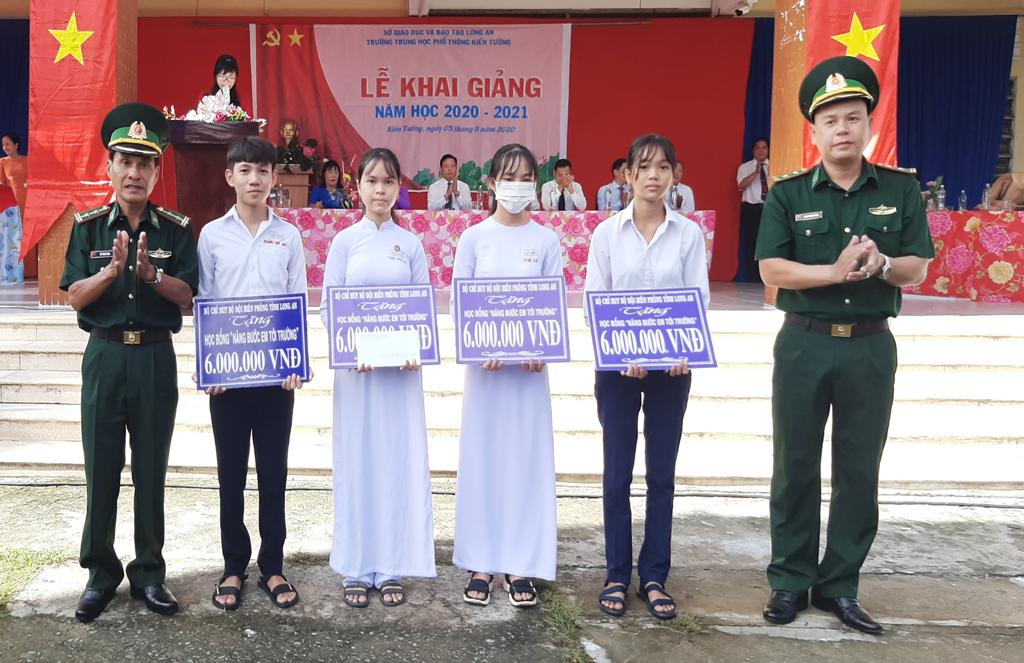 Ngoài ra, Chương trình “Nâng bước em đến trường” của Bộ đội Biên phòng Long An trao tặng 4 suất học bổng cho học sinh có hoàn cảnh khó khăn của trường, mỗi suất trị giá 6 triệu đồng./.