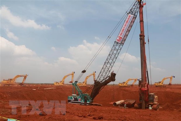 | Thi công cọc khoan nhồi móng nhà ga hành khách sân bay Long Thành. (Ảnh: TTXVN) |
