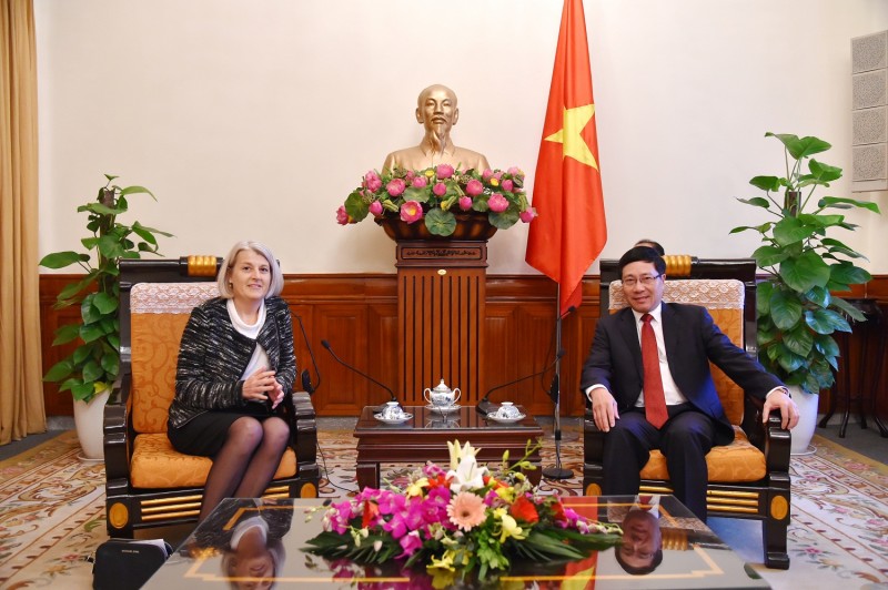 Tại buổi tiếp, Phó Thủ tướng, Bộ trưởng Ngoại giao Phạm Bình Minh hoan nghênh Đại sứ Charlotte Laursen nhân dịp Đại sứ đảm nhận trọng trách công tác mới tại Việt Nam; khẳng định Việt Nam luôn coi trọng phát triển quan hệ hữu nghị, hợp tác hiệu quả với Đan Mạch và bày tỏ vui mừng trước sự phát triển tích cực của quan hệ đối tác toàn diện giữa hai nước. Phó Thủ tướng, Bộ trưởng Ngoại giao Phạm Bình Minh đánh giá cao việc hai bên vừa ký kết Kế hoạch hành động chung năm 2016 với nhiều hoạt động quan trọng, thiết thực trong các lĩnh vực hợp tác chính trị, kinh tế, môi trường, giáo dục – đào tạo, văn hóa. Thay mặt Chính phủ Việt Nam, Phó Thủ tướng, Bộ trưởng Ngoại giao Phạm Bình Minh cảm ơn Chính phủ Đan Mạch đã hỗ trợ nguồn vốn ODA quan trọng cho Việt Nam và đề nghị Đại sứ Charlotte Laursen phối hợp chặt chẽ với các Bộ, ngành, địa phương của Việt Nam triển khai các biện pháp làm sâu sắc hơn quan hệ song phương trong tất cả các lĩnh vực, đặc biệt trong bối cảnh năm 2016 hai bên sẽ kỷ niệm 45 năm ngày thiết lập quan hệ ngoại giao.