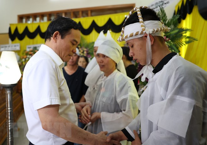 Phó Thủ tướng Chính phủ Trần Lưu Quang động viên, chia buồn với gia đình nạn nhân trong vụ việc. (Ảnh: Tuấn Anh/TTXVN)