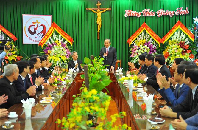 Phó Thủ tướng khẳng định Nhà nước Việt Nam luôn tôn trọng và đảm bảo quyền tự do tín ngưỡng, tôn giáo của người dân, đây là một chính sách nhất quán nhằm đáp ứng quyền và lợi ích hợp pháp của tín đồ các tôn giáo, làm cho đồng bào các tôn giáo luôn yên tâm sống đạo và giữ đạo hài hòa trong lòng dân tộc, góp phần củng cố khối đại đoàn kết toàn dân tộc để xây dựng và phát triển đất nước. Phó Thủ tướng mong rằng Giám mục Phó Chủ tịch và các vị chức sắc tổ chức Lễ Thiên Chúa Giáng sinh cho đồng bào công giáo thật vui tươi, an toàn; tiếp tục động viên đồng bào công giáo nỗ lực hơn nữa trong vai trò công giáo tốt đồng thời cũng là người công dân tốt, góp phần đưa đất nước ổn định, thăng tiến, nhân dân mỗi ngày được sung sướng và hạnh phúc hơn. Đảng, Nhà nước sẽ làm hết mình vì mục tiêu cao cả đó.