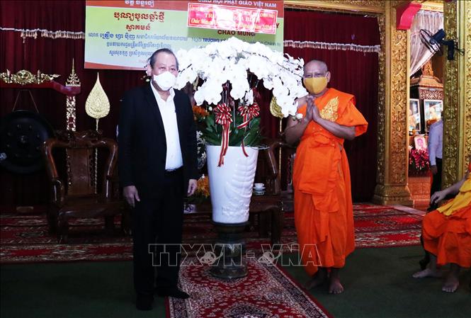 Nhân dịp này, Phó Thủ tướng Thường trực Chính phủ Trương Hòa Binh đã dâng hương và thực hiện nghi thức tắm Phật truyền thống của Phật giáo Nam tông trong dịp Tết cổ truyền Chol Chnam Thmay và gửi tặng 2 tấn gạo cho đồng bào Khmer tại khu vực Thành phố Hồ Chí Minh gặp khó khăn do dịch COVID-19./.