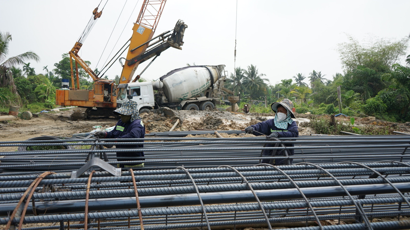 | Đơn vị thi công cầu Bình Gởi, dự án đường Vành đai 3 - Thành phố Hồ Chí Minh đang tập trung phương tiện, nhân lực để bảo đảm tiến độ công trình. (Ảnh: Minh Duy) |