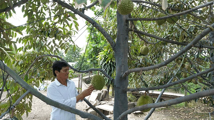 Vườn sầu riêng thuộc Hợp tác xã Vườn cây ăn trái Trường Thọ 2A, xã Trường Long, huyện Phong Ðiền.