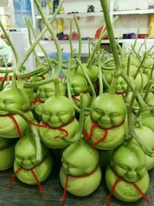 Cũng như hoa, gia đình nào cũng chuẩn bị mâm ngũ quả chưng tết. Trước đây, mâm ngũ quả truyền thống thường bao gồm: Mãng cầu, dừa, đu đủ, xoài, sung. Nhưng theo xu thế ngày nay, người dân thường chọn cho mình những loại quả không chỉ có ý nghĩa mà còn đẹp mắt (như trái phật thủ, quả thần tài, khóm son, bưởi da xanh, thanh long chậu,...). Cẩm Tú, nhà ở thị trấn Đức Hòa chia sẻ: “Em có bạn ở TP.HCM có nguồn hàng cung cấp dưa lê thần tài để chưng tết. Quả này nhìn đẹp và lạ mắt, em đặt 4 quả cho gia đình để bổ sung vào mâm ngũ quả. Em giới thiệu cho một số bạn thân, họ thấy đẹp nên cũng nhờ đặt mua”.