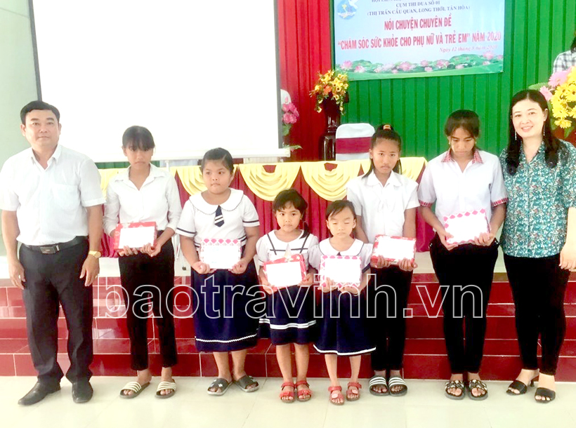 Học sinh nghèo xã Long Thới nhận quà trong năm 2020. Ảnh: TL
