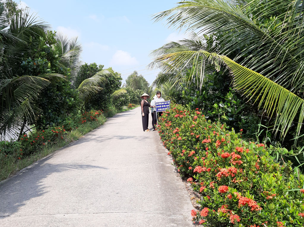 Đều đặn từ nhiều tháng nay, chị Lê Hoàng Việt cùng các hội viên (HV) Chi hội PN ấp Bằng Lăng, xã Tân Lập, huyện Tân Thạnh chia nhau quét rác, nhổ cỏ mọc 2 bên đường nông thôn. Các chị còn ra quân trồng cây xanh trên tuyến đường cặp kênh Bằng Lăng để con đường thêm xanh, đẹp. “Nhà tôi ở sát lộ, trước đây, tuyến đường này trời nắng thì bụi, mưa thì lầy, người dân, học sinh đi lại rất khó khăn.