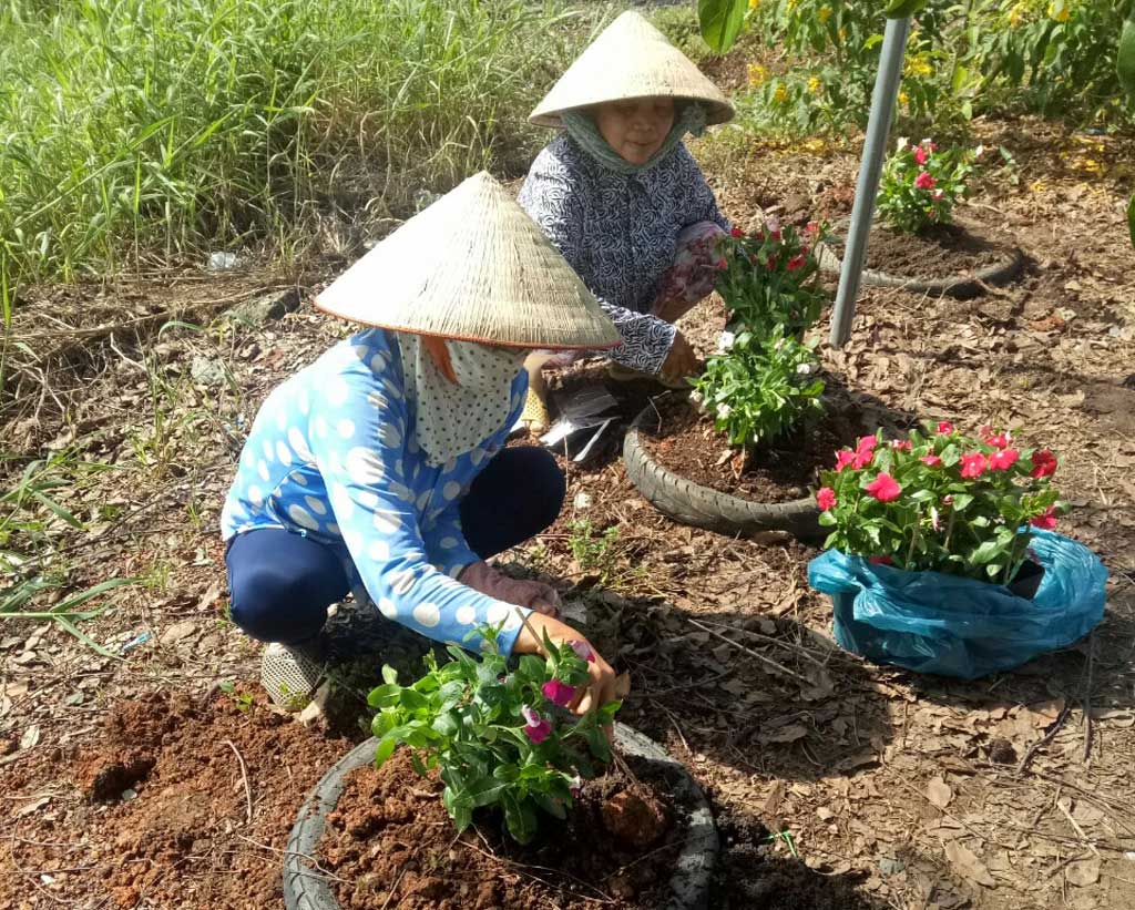 Có dịp đi dọc theo tuyến kênh Cái Cỏ, khu vực biên giới thuộc ấp 1, xã Hưng Điền A, huyện Vĩnh Hưng, nhiều người ngỡ ngàng trước con đường xanh, sạch, đẹp, lắm màu sắc của nhiều loại hoa mười giờ. Đây là con đường có sự chăm chút khéo léo từ bàn tay của nhiều hội viên (HV) PN ấp 1. Chị Bùi Thị Hà chia sẻ, thực hiện theo hướng dẫn của Hội Liên hiệp Phụ nữ Việt Nam (LHPNVN) xã, chị em nhận thấy đây là việc làm ý nghĩa. Mọi người xây dựng gia đình theo các tiêu chí của cuộc vận động, không chỉ giữ hạnh phúc gia đình mà còn làm cho cảnh quan môi trường khu vực biên giới thêm sạch đẹp.