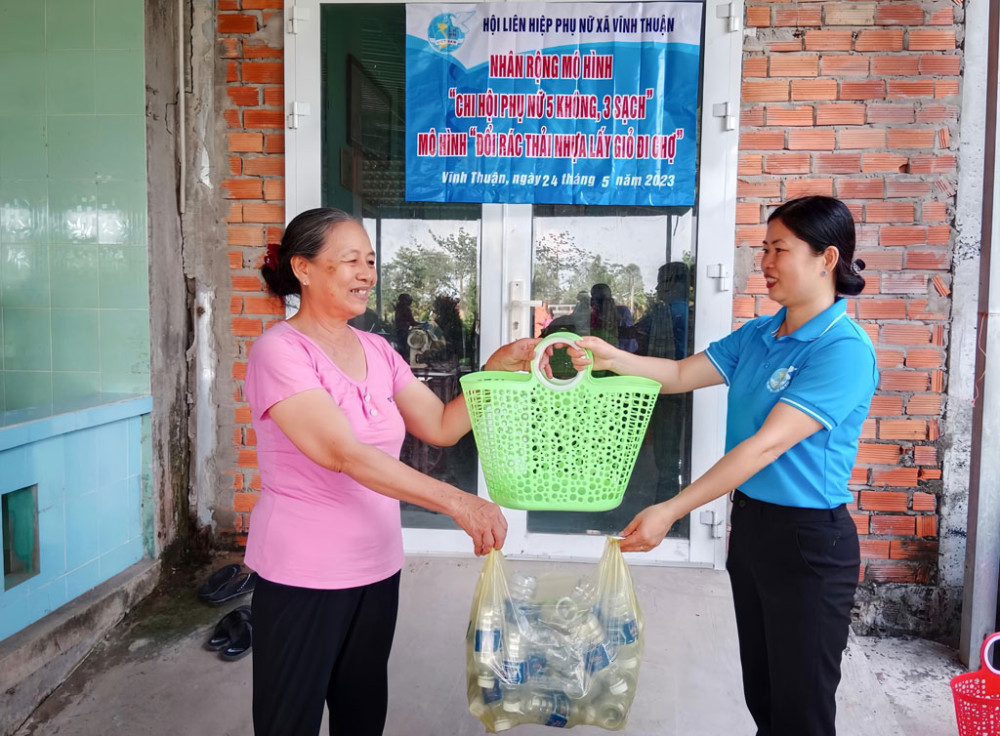 Mô hình Đổi rác thải nhựa lấy giỏ đi chợ được chi hội phụ nữ tích cực tham gia, góp phần bảo vệ môi trường