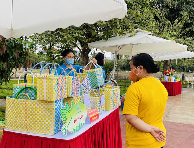 | Sản phẩm tái chế được giới thiệu tới hội viên phụ nữ trong khuôn khổ lễ phát động |