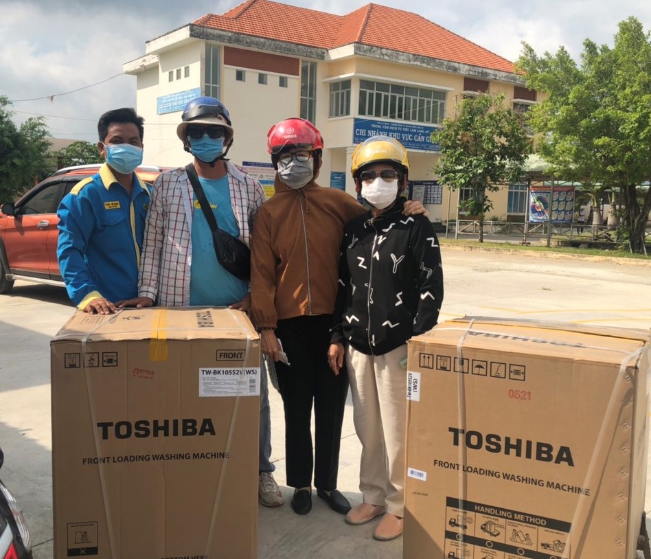 Hội Liên hiệp Phụ nữ huyện Cần Giuộc vận động mạnh thường quân hỗ trợ máy giặt cho trung tâm Y tế huyện và 2 Khu cách ly của huyện