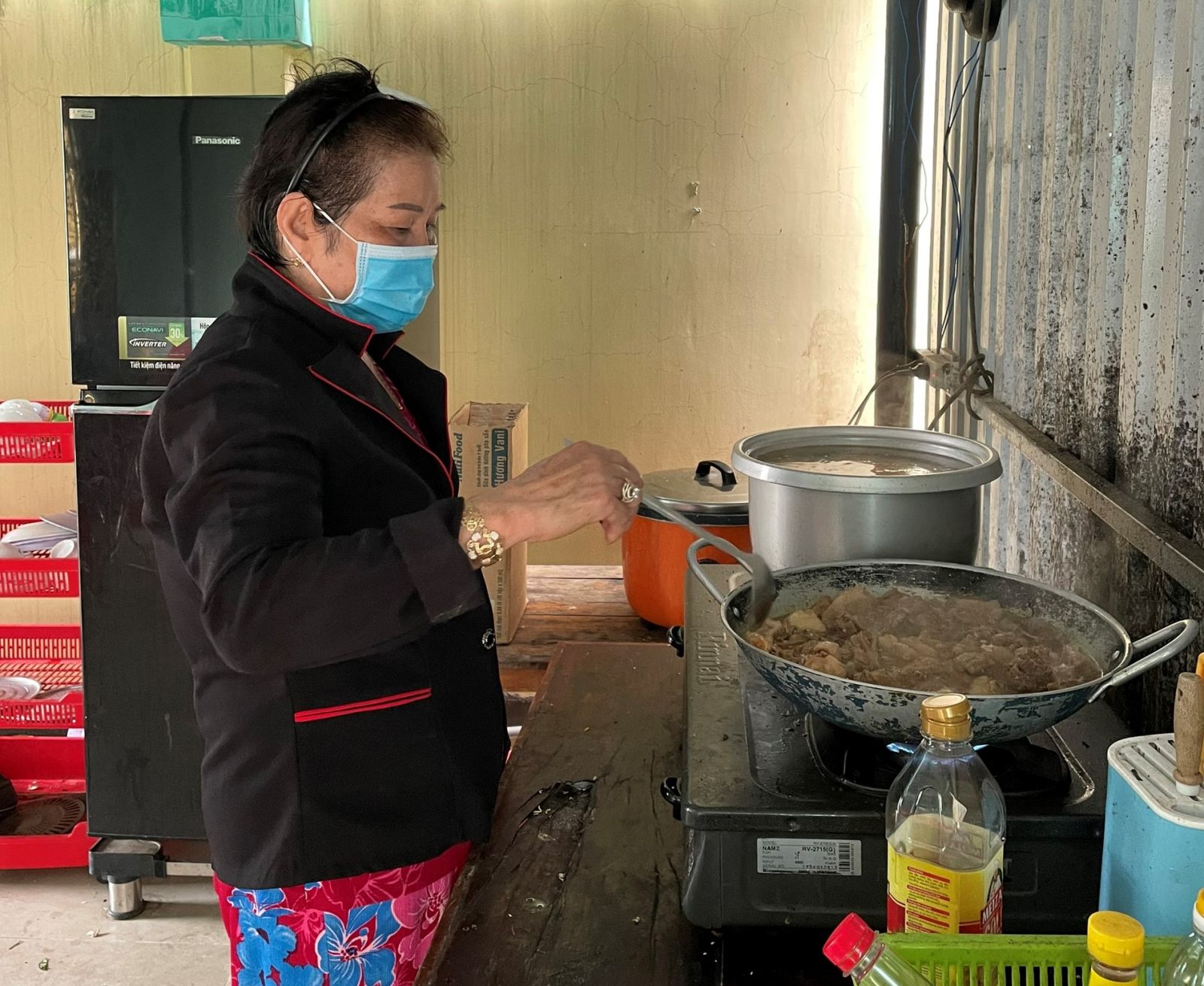 Phụ nữ tham gia nấu ăn phục vụ nơi tuyến đầu chống dịch