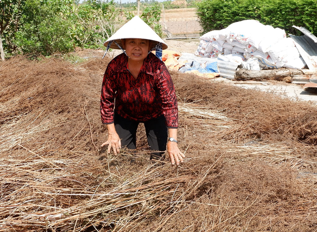 Những cây rau tía tô được bà Nguyễn Thị Thanh Thúy phơi khô, sau đó vò lấy hạt để gieo trồng cho đợt tiếp theo