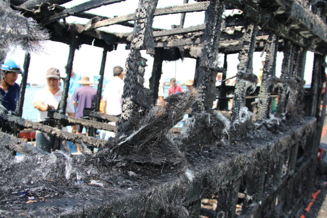 Chiếc ghe bị thiêu rụi - Ảnh: Duy Khánh