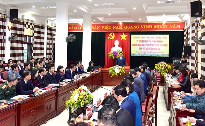 Phát biểu kết luận buổi làm việc, Bí thư Thành ủy Hà Nội Vương Đình Huệ đánh giá cao kết quả thực hiện nhiệm vụ chính trị của huyện Phúc Thọ trong năm 2020. Đồng chí đề nghị huyện Phúc Thọ cần tập trung, chủ động và quyết tâm đề ra giải pháp để khắc phục, nhất là những tồn tại, bất cập trong quản lý đất đai; trong ngăn chặn, xử lý tình trạng khai thác cát trái phép.