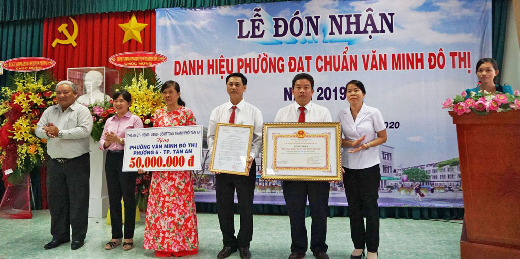 Lãnh đạo TP.Tân An trao bằng công nhận, tiền thưởng cho lãnh đạo phường 6