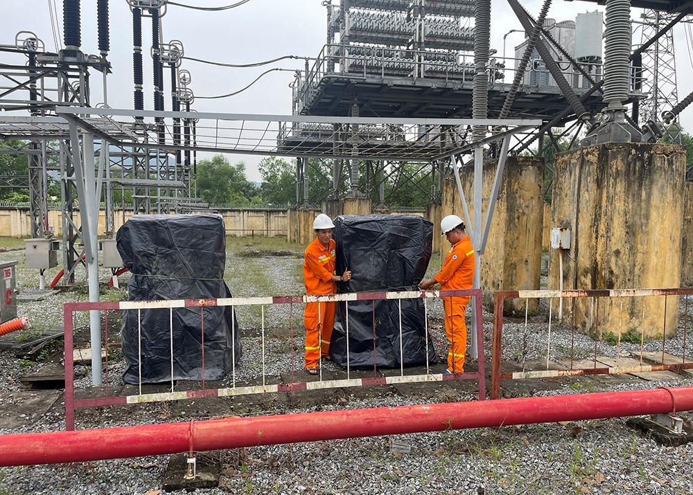Đối với trạm biến áp đã hoàn thành công tác gia cố, chằng chống các tủ đấu ngoài trời nguy cơ ngã đổ, nhà điều khiển, chằng chống pin mặt trời áp mái, kể cả mái của nhà điều khiển, nhà nghỉ ca, mái tôn bể nước cứu hoả. Xử lý hơi ẩm đọng trong tủ đấu dây ngoài trời, xâm nhập ẩm các tủ trung thế khi có mưa xảy ra tại các trạm biến áp. Chèn chống các cửa kính, cửa ra vào phòng điều khiển, phòng phân phối 22kV. Các trạm biến áp tái lập ca trực cho tất cả các trạm biến áp, Tổ thao tác lưu động tập trung 100% quân số vào 13 giờ ngày 27/9/2022.