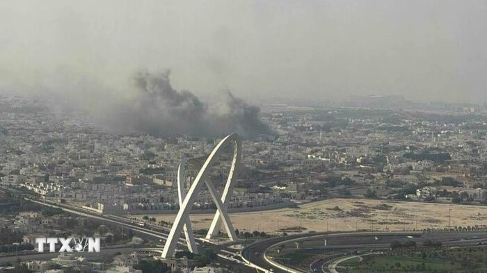 Khói bốc lên sau các vụ nổ ở Doha, Qatar ngày 09/9/2025 (Ảnh: IRNA/TTXVN)