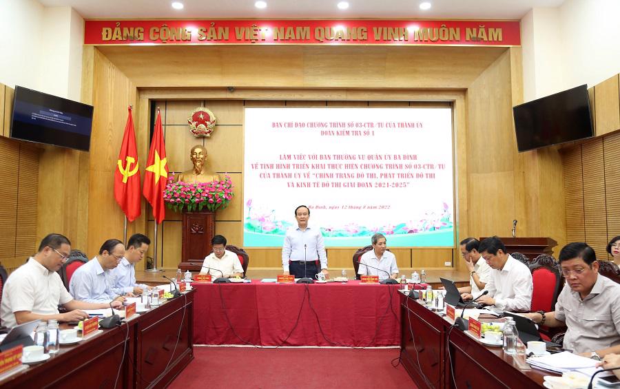 Ngày 12/8, Đoàn kiểm tra của Ban Chỉ đạo Chương trình số 03-CTr/TU của Thành ủy Hà Nội (khóa XVII) về "Chỉnh trang đô thị, phát triển đô thị và kinh tế đô thị giai đoạn 2021-2025" (Chương trình số 03-CTr/TU) do đồng chí Nguyễn Ngọc Tuấn, Phó Bí thư Thành ủy, Chủ tịch HĐND thành phố (TP), Trưởng ban Chỉ đạo làm Trưởng đoàn đã làm việc với Ban Thường vụ Quận ủy Ba Đình về tình hình triển khai chương trình trên.
