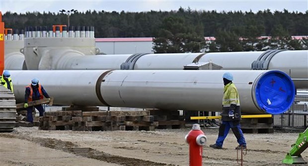 Lắp đặt đường ống trong dự án Dòng chảy phương Bắc 2 tại Lubmin, Đông Bắc Đức. (Ảnh: AFP/TTXVN)