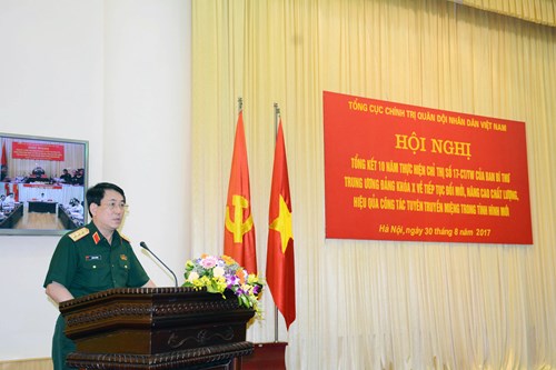 Đánh giá kết quả thực hiện Chỉ thị số 17-CT/TW của Ban Bí thư Trung ương Đảng khoá X, Trung tướng Nguyễn Trọng Nghĩa khẳng định, 10 năm qua, công tác tuyên truyền miệng trong toàn quân đã được triển khai đồng bộ, nghiêm túc, thống nhất từ trên xuống dưới, có chuyển biến mạnh mẽ, đi vào chiều sâu, phát huy được hiệu quả thực chất, là một vũ khí sắc bén trong đấu tranh giữ vững trận địa tư tưởng của Đảng trong quân đội, góp phần cung cấp thông tin chính thống, định hướng tư tưởng cho nhân dân trên địa bàn cả nước. Nội dung tuyên truyền đã quán triệt nghiêm túc đường lối, quan điểm của Đảng, của Quân ủy Trung ương, nhiệm vụ quân sự, quốc phòng; sự lãnh đạo, chỉ đạo của cấp ủy Đảng, chỉ huy các cấp, bảo đảm kịp thời, đúng định hướng, đáp ứng yêu cầu nhiệm vụ xây dựng quân đội vững mạnh về chính trị. Hình thức, phương pháp cung cấp, tiếp nhận và chuyển tải thông tin linh hoạt, đa dạng, phong phú, luôn được đổi mới. Quan tâm xây dựng, thường xuyên kiện toàn đội ngũ báo cáo viên theo phân cấp có chất lượng tốt, hoạt động tích cực phát huy hiệu quả trong tuyên truyền và định hướng tư tưởng…
