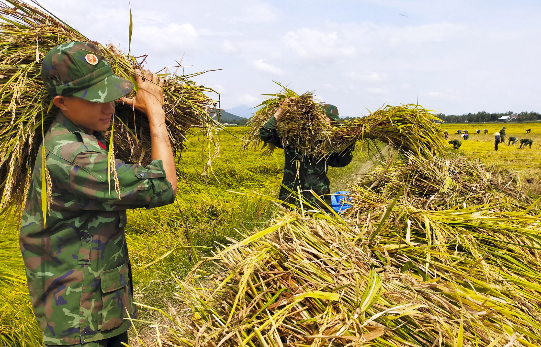 Quân đội giúp dân thu hoạch lúa bị thiệt hại do thiên tai