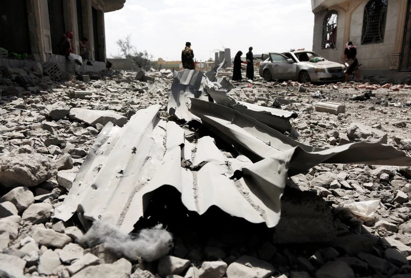 Cảnh đổ nát sau các cuộc không kích của Mỹ nhằm vào các mục tiêu của Houthi tại Sanaa, Yemen (Ảnh: THX/TTXVN)