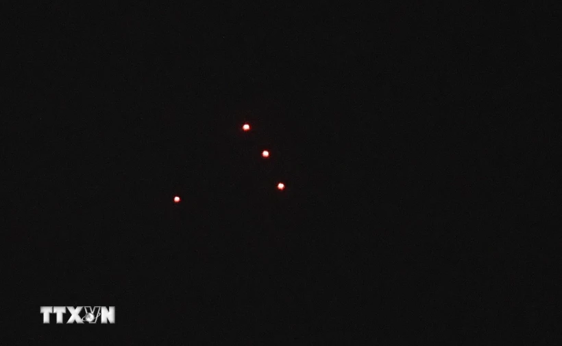 Các vệt sáng của tên lửa trên bầu trời Tehran, Iran, ngày 14/6 (Ảnh: THX/TTXVN)
