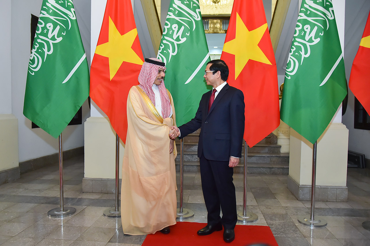 Trong khuôn khổ chuyến thăm Việt Nam của Bộ trưởng Ngoại giao Ả-rập Xê-út Hoàng thân Faisal Bin Farhan Al Saud (Phây-xan bin Pha-han An Xa-út) (17-18/3/2022), chiều ngày 17/3/2022, Bộ trưởng Ngoại giao Bùi Thanh Sơn đã hội đàm với Bộ trưởng Ngoại giao Ả-rập Xê-út.