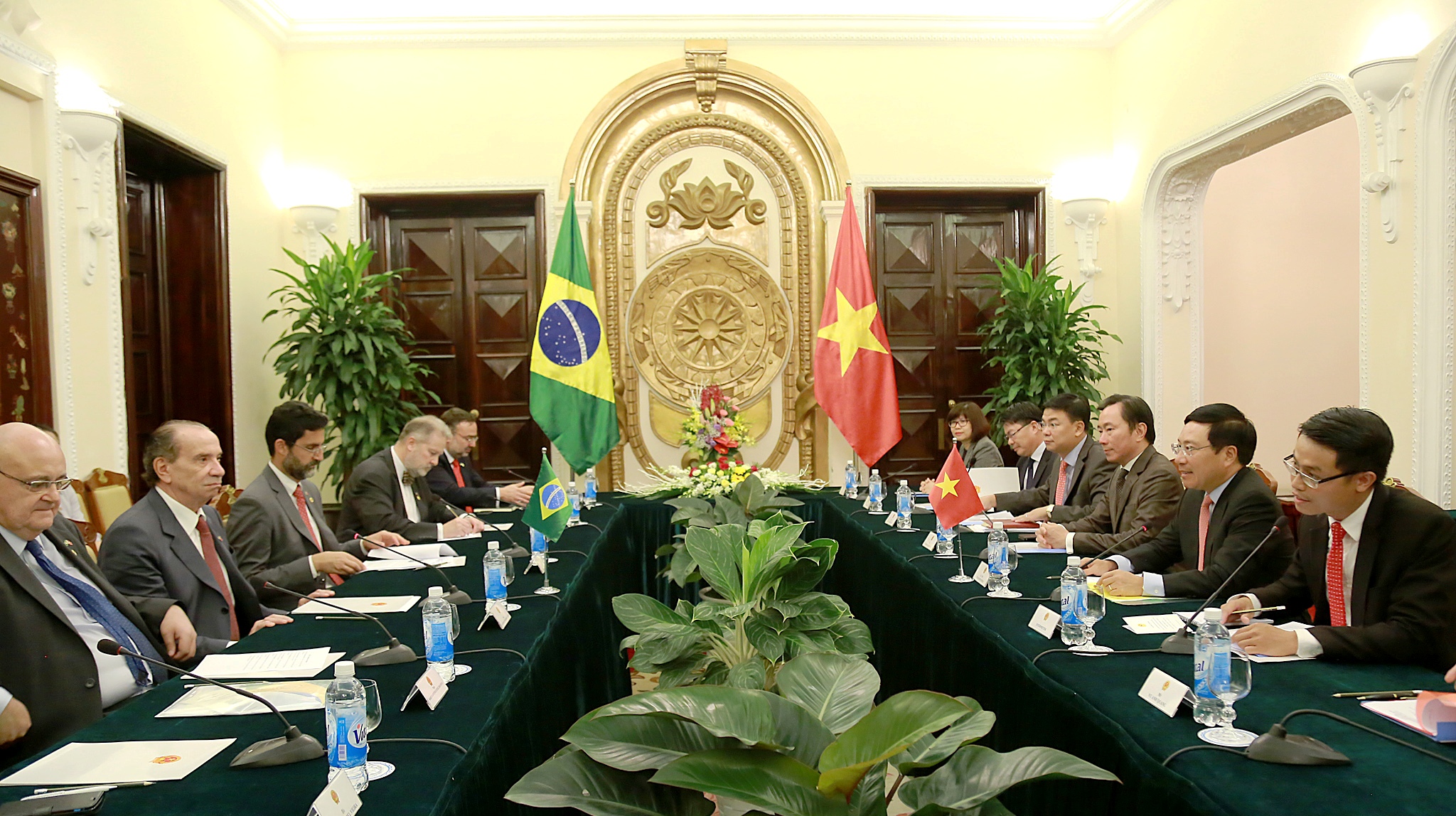Phó Thủ tướng, Bộ trưởng Phạm Bình Minh và Bộ trưởng A.N. Phê-rây-ra nhất trí đánh giá mối quan hệ hợp tác Việt Nam – Bra-xin thời gian qua tiếp tục phát triển tích cực trên tất cả các lĩnh vực: quan hệ chính trị ngày càng chặt chẽ và tin cậy thể hiện qua kết quả các chuyến thăm, tiếp xúc thường xuyên giữa Lãnh đạo cấp cao và các cấp Bộ/ngành hai nước; trao đổi thương mại song phương năm 2016 đạt gần 3,1 tỷ USD, tăng hơn 3 lần so với năm 2010 và riêng 7 tháng đầu năm 2017 đạt 1,9 tỷ USD, tăng 9% so với cùng kỳ năm trước; hai nước cũng duy trì hợp tác chặt chẽ tại các tổ chức quốc tế và diễn đàn đa phương, nhất là tại Liên hợp quốc và Tổ chức Thương mại Thế giới (WTO). Tuy vậy, hai nước còn rất nhiều tiềm năng hợp tác, nhất là trên các lĩnh vực sản xuất, chế biến nông - thủy sản, công nghiệp chế tạo, năng lượng sinh học, xây dựng hạ tầng cơ sở, hàng không và giao thông - vận tải.