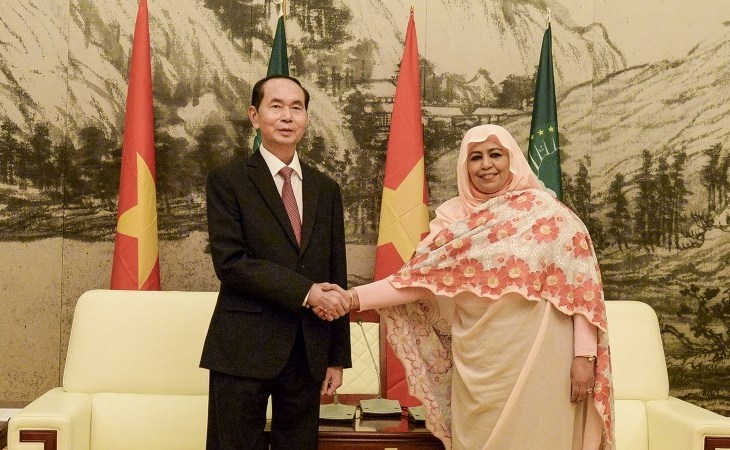 Bà Quyền Chủ tịch Ủy ban Liên minh châu Phi (AU) cảm ơn Chủ tịch nước dành thời gian thăm AU, chúc mừng Việt Nam phát triển mạnh mẽ, là nền kinh tế phát triển nhanh nhất Đông Nam Á; đánh giá cao Việt Nam đã tham gia lực lượng gìn giữ hoà bình của Liên Hiệp Quốc, góp phần duy trì hoà bình ở châu Phi.
