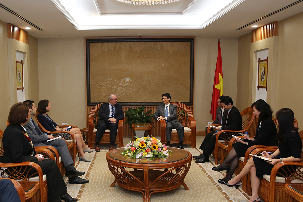 Phó Thủ tướng đánh giá cao sự hợp tác hiệu quả giữa Việt Nam và Bỉ tại các diễn đàn đa phương và quốc tế như Liên Hợp Quốc, Tổ chức Pháp ngữ, Diễn đàn Kinh tế Á-Âu (ASEM) và ASEAN, đặc biệt là sự ủng hộ lẫn nhau vào một số cơ quan quan trọng của Liên Hợp Quốc.