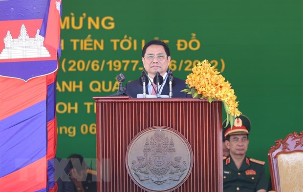| Thủ tướng Phạm Minh Chính đã có bài phát biểu quan trọng tại Lễ kỷ niệm lần thứ 45 năm “Hành trình hướng tới lật đổ chế độ diệt chủng Pol Pot” của Thủ tướng Campuchia Samdech Techo Hun Sen (20/6/1977-20/6/2022). |