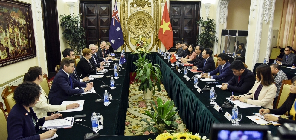 Nhận lời mời của Phó Thủ tướng, Bộ trưởng Ngoại giao Phạm Bình Minh, Bộ trưởng Ngoại giao Ô-xtrây-li-a Ma-ri-xơ Pên (Marise Payne) thăm chính thức Việt Nam từ ngày 12 -13/6/2019. Sáng 12/ 6, Phó Thủ tướng, Bộ trưởng Ngoại giao Phạm Bình Minh đã có cuộc hội đàm với Bộ trưởng Ma-ri-xơ Pên tại Nhà khách Chính phủ.