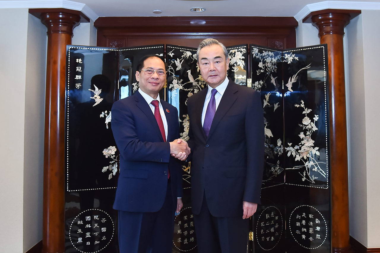 | Bộ trưởng Bộ Ngoại giao Bùi Thanh Sơn và Uỷ viên Bộ Chính trị, Chủ nhiệm Văn phòng Ủy ban Công tác Đối ngoại Trung ương Đảng Cộng sản Trung Quốc Vương Nghị. |